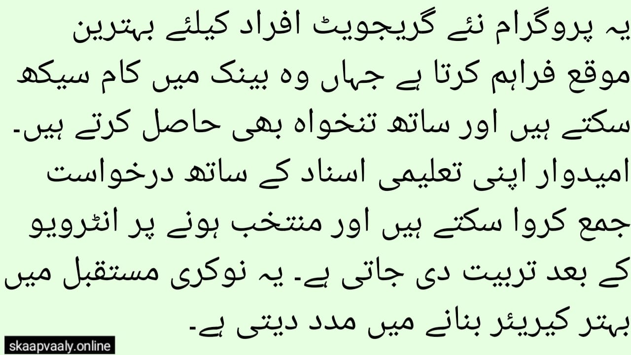 If you are looking for entry-level bank jobs in Pakistan, this opportunity is worth considering. The training program offers practical experience and a salary, which is ideal for beginners.