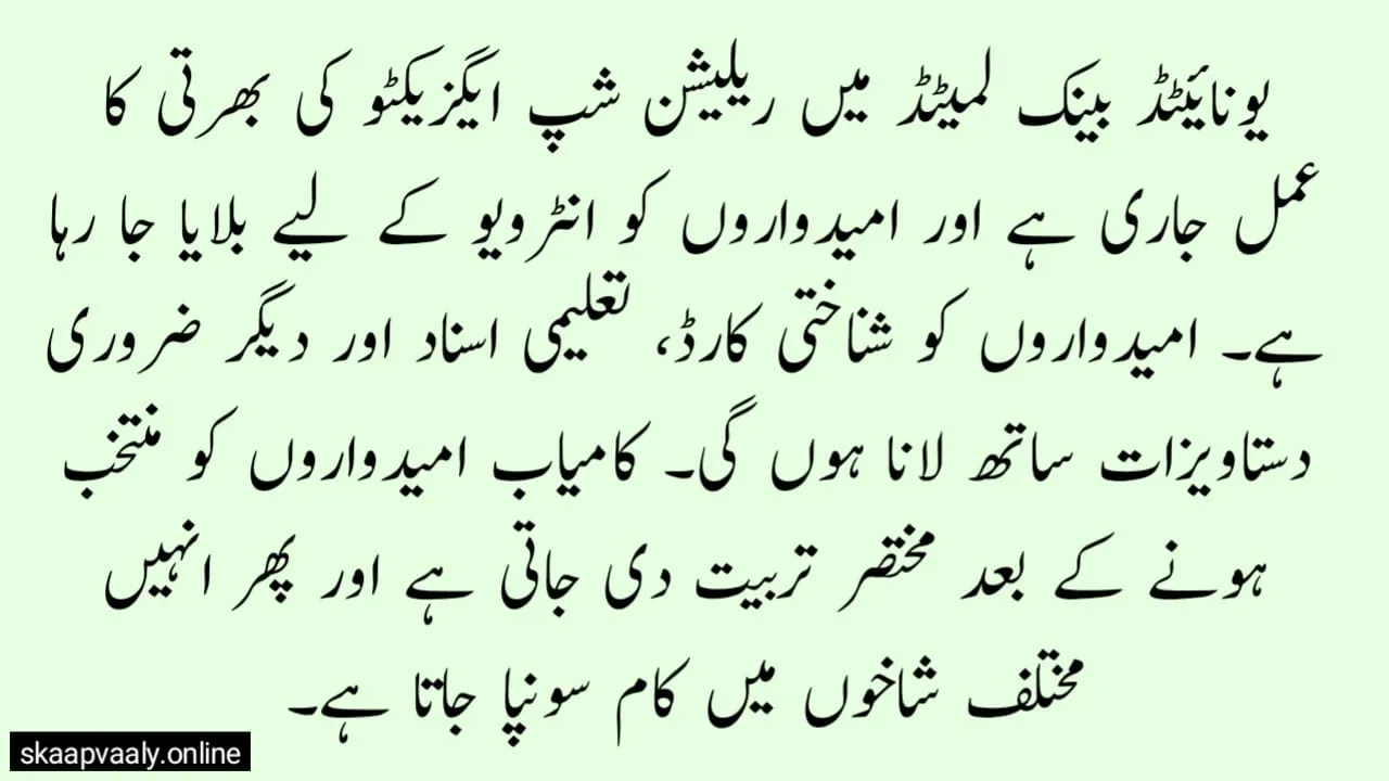 The current UBL recruitment update confirms interviews for the Relationship Executive role have started. Candidates who applied earlier are now being shortlisted.