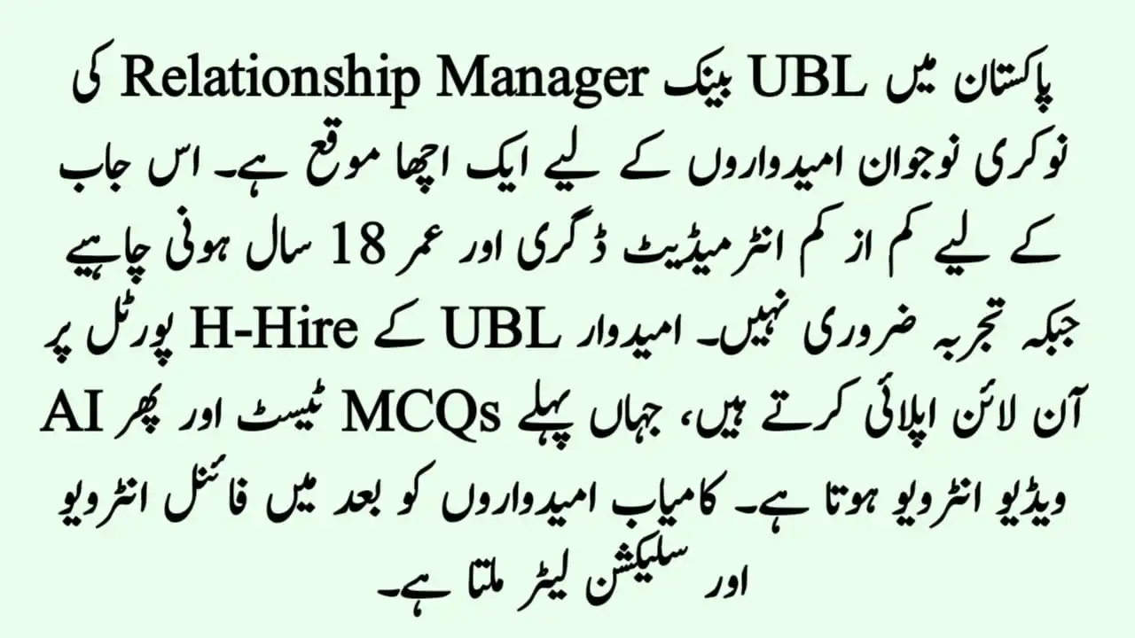 Many graduates in Pakistan want a bank job that actually pays the bills. A UBL Relationship Manager role is one possible starting point.