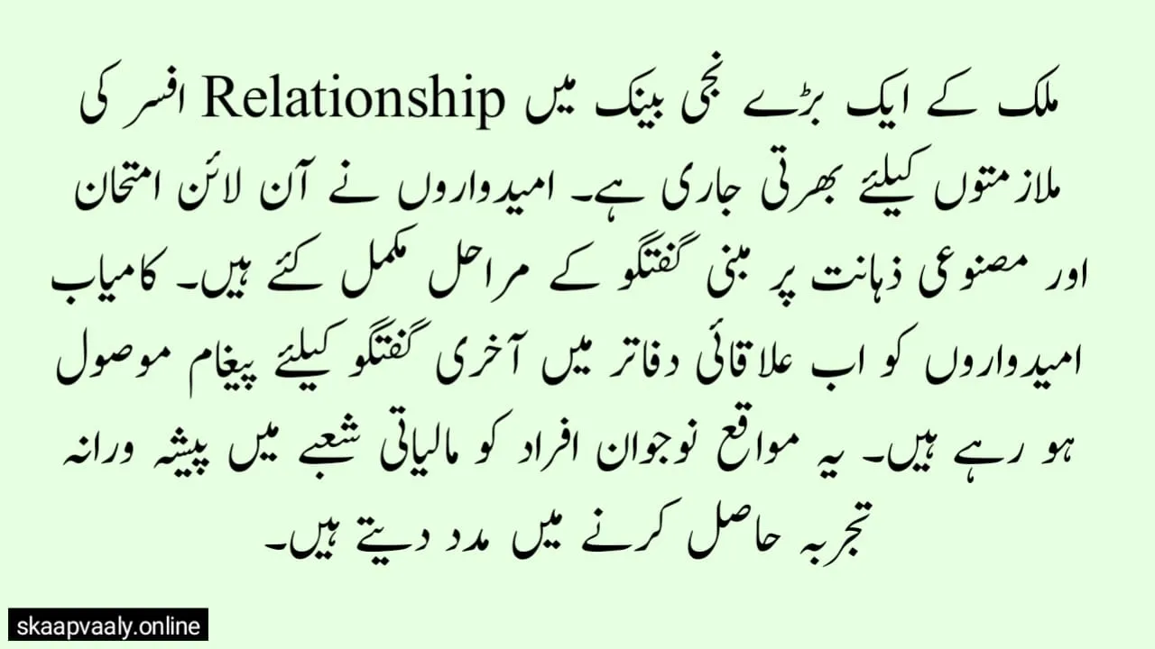 This recruitment cycle focuses on the Relationship Officer role. The job centers on customer relationships and branch service.