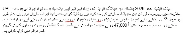 Most candidates want the quick facts before reading the full guide. The table below highlights the key information about UBL Bank Cashier Jobs 2026 so you can understand the opportunity quickly.