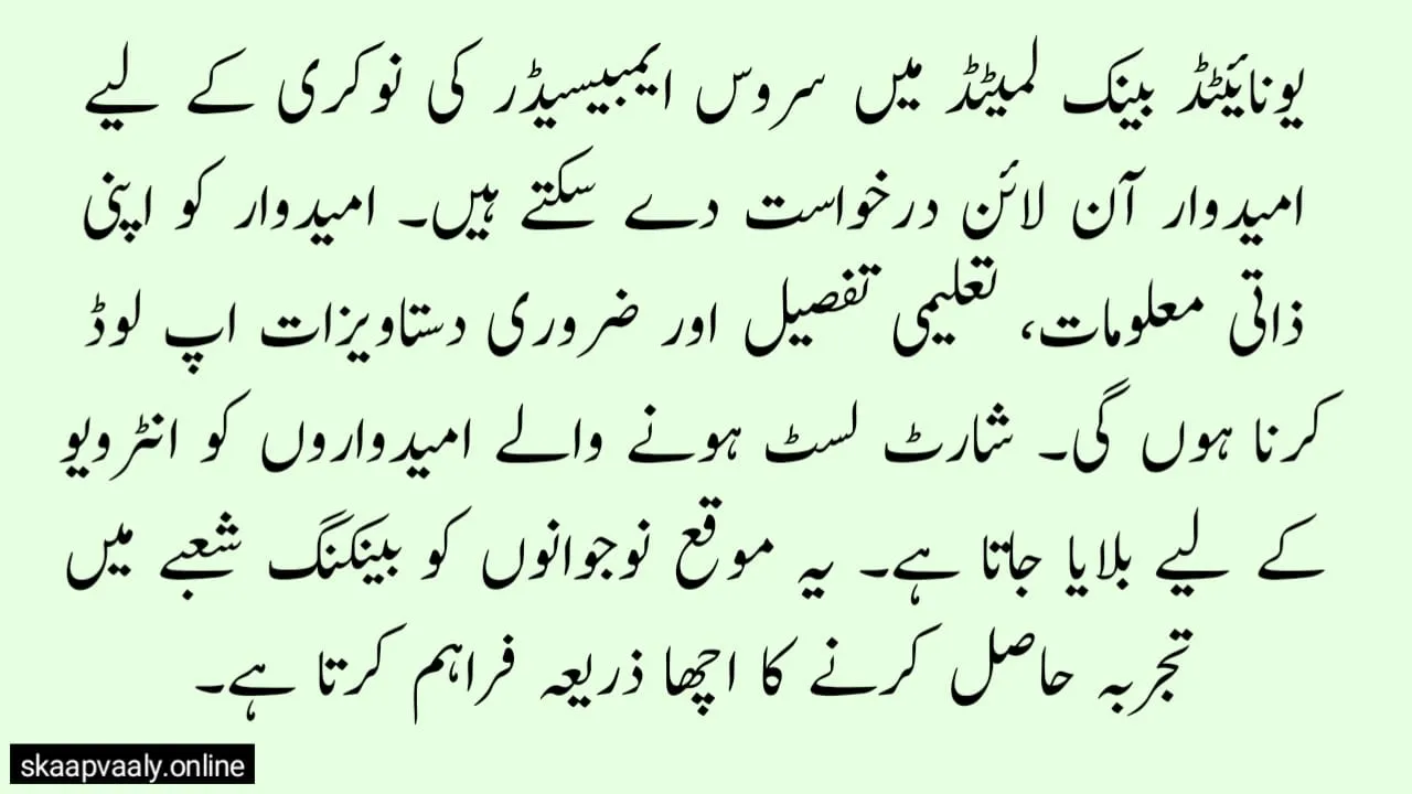 UBL hires entry staff across its branches. The Service Ambassador position appears in these openings.